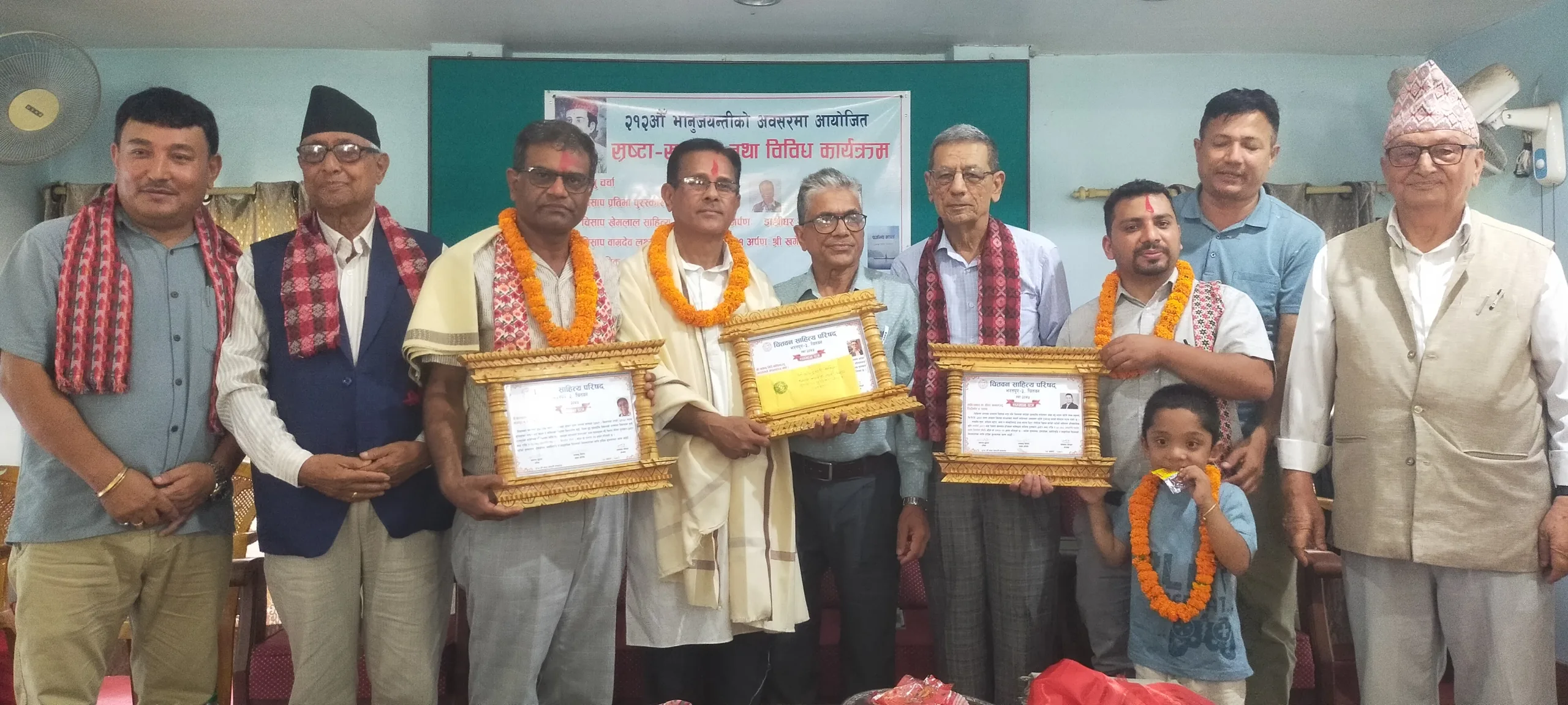 चितवन साहित्य परिषद् र नारायणी कला मन्दिरकाे संयुक्त आयाेजनमा २१२अाैँ भानु जयन्ती विशेष कार्यक्रममाझ प्रमुख अतिथि रामबाबु घिमिरेले यी पुरस्कार तथा सम्मान प्रदान गर्नुभएको हो ।