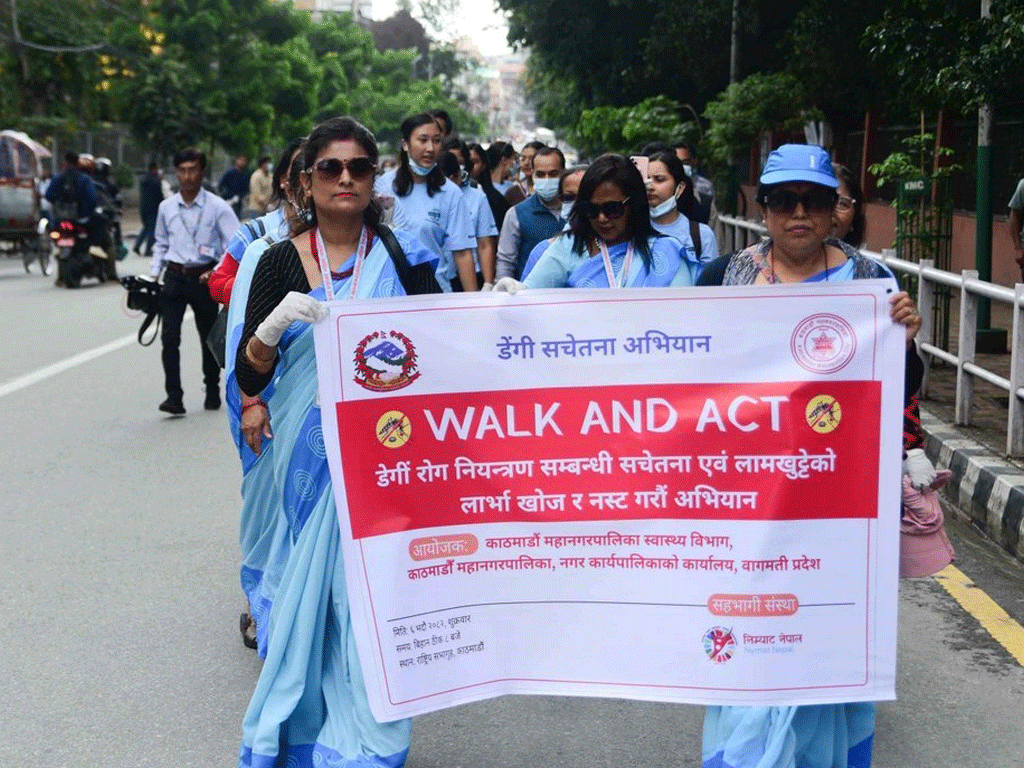 काठमाडौँ । पछिल्लो समय डेंगीका बिरामी बढ्दै गएपछि नियन्त्रणका लागि काठमाडौँ महानगरपालिकाले ‘वाक एन्ड एक्ट’ मेघा अभियान सञ्चालन गरेको छ । डेंगी नियन्त्रणका लागि महानगरपालिकाको ३२ वटै वडामा एकै पटक गरिएको मेघा अभियान प्रत्येक वडामा रहेको स्वास्थ्य प्रवर्द्धन केन्द्रमार्फत गरिएको महानगरपालिकाले जानकारी दिएको छ । महानगरपालिकाको स्वास्थ्य विभागका महामारी रोग रोकथाम तथा नियन्त्रण ‘फोकल पर्सन’ ऋषिप्रसाद भुसालका अनुसार लामखुट्टे बस्ने स्थान नष्ट गर्ने, माइकिङ गर्ने, नगरवासीलाई सचेत गराउने लगायत काम गरिँदै आएको छ ।