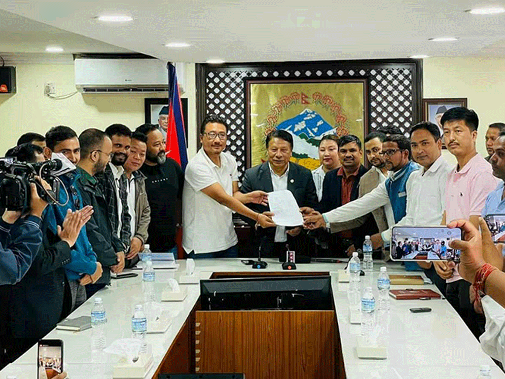 काठमाडौँ । विद्यार्थीमैत्री शिक्षा ऐन लागु गर्नुपर्ने माग राखेर संयुक्त विद्यार्थी संगठनले कार्यवाहक प्रधानमन्त्री प्रकाशमान सिंहलाई ज्ञापन पत्र बुझाएको छ ।