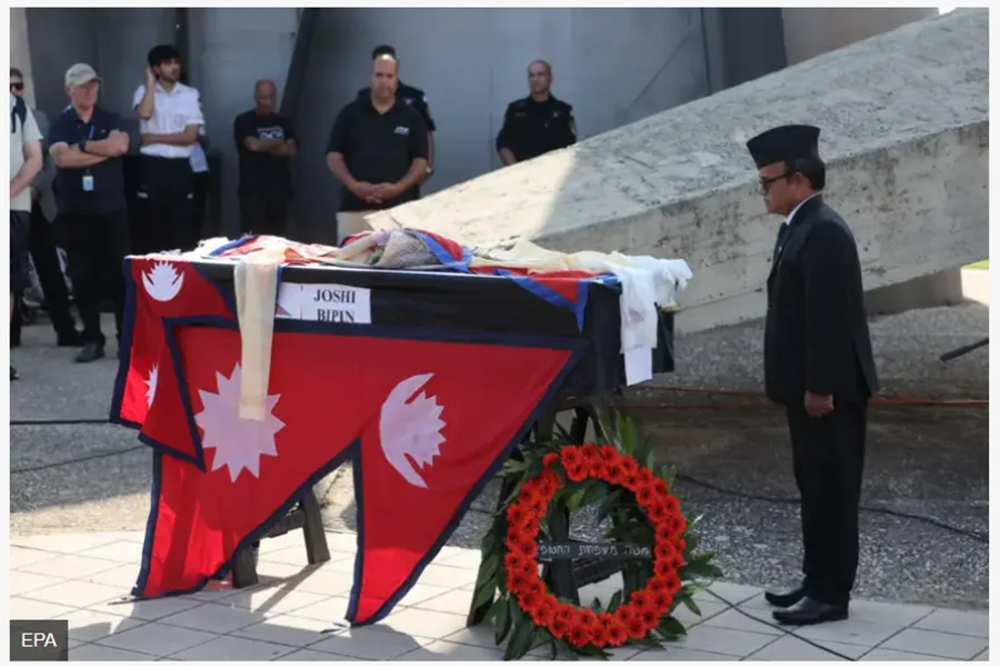 काठमाडौं । इजरायलमा मारिएका विपिन जोशीको शव काठमाडौं ल्याइएको छ । विपिनको शव सोमबार (आज) केहीबेरअघि मात्रै त्रिभुवन अन्तर्राष्ट्रिय विमानस्थल ल्याइएको हो ।