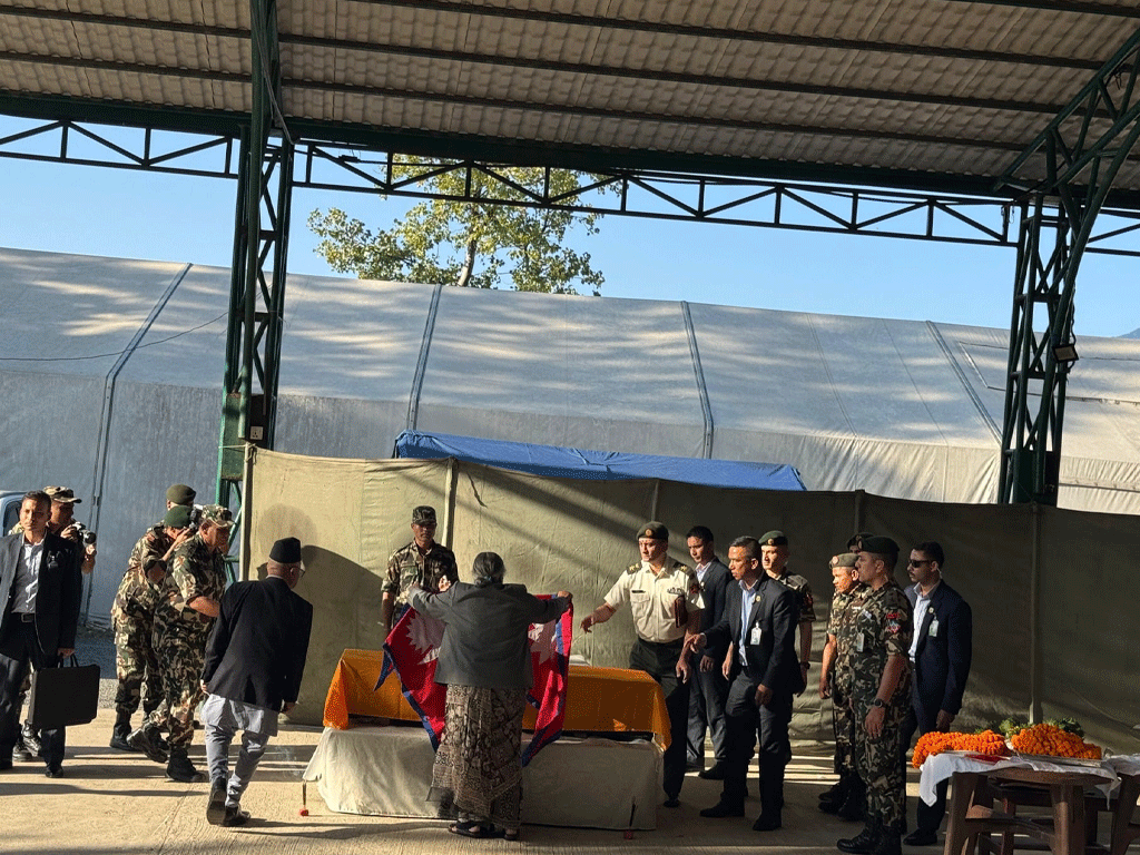 काठमाडौँ । इजरायलमा मारिएका विपिन जोशीको पार्थिव शरीरमा प्रधानमन्त्रीसहितका उच्च पदस्थहरूले श्रद्धाञ्जली अर्पण गरेका छन् ।