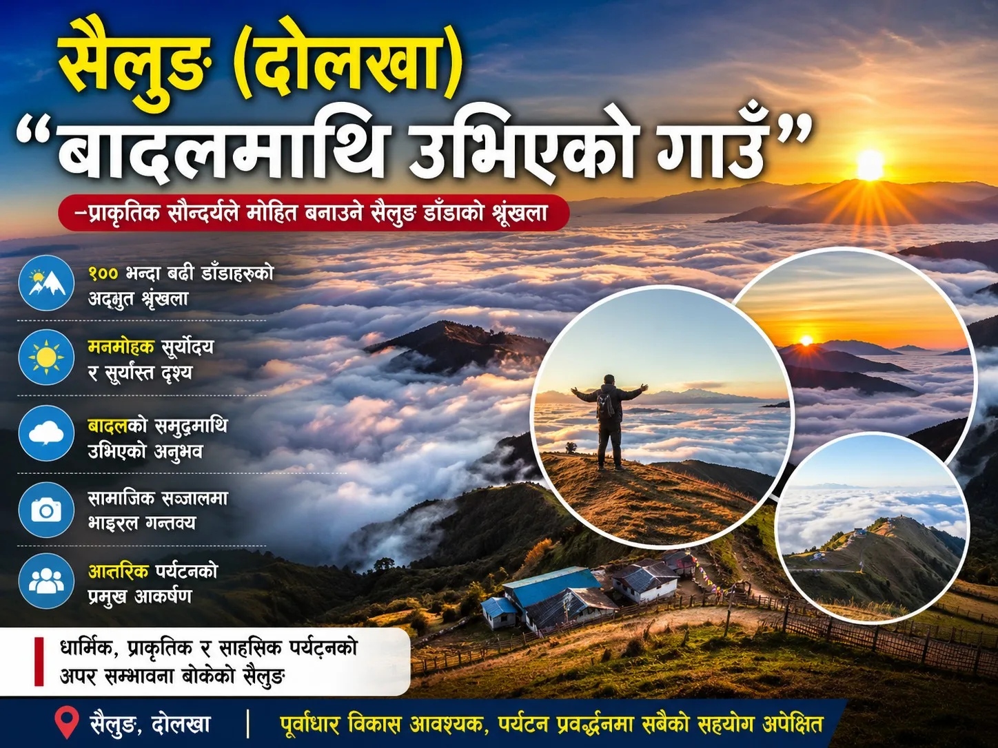 दोलखा जिल्लाको उच्च पहाडी भू–भागमा अवस्थित Sailung क्षेत्र पछिल्लो समय आन्तरिक तथा बाह्य पर्यटकहरूको प्रमुख आकर्षण बनेको छ। “सय डाँडाको भूमि” भनेर चिनिने Sailung वास्तवमा १०० भन्दा बढी हरिया डाँडाहरूको सुन्दर श्रृंखलाले बनेको प्राकृतिक स्वर्ग हो, जसले यहाँ पुग्ने जो–कोहीलाई अद्वितीय अनुभूति प्रदान गर्छ।