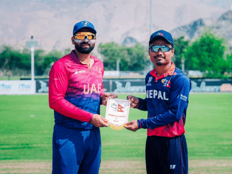 टी-२० विश्वकप छनोटमा युएईविरुद्ध पहिला ब्याटिङ गर्दै नेपाल